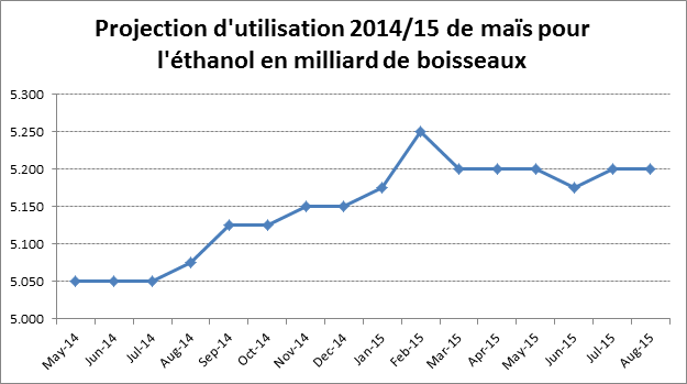Projection 2014/15 sur la demande via éthanol. Rapport USDA – WASDE.