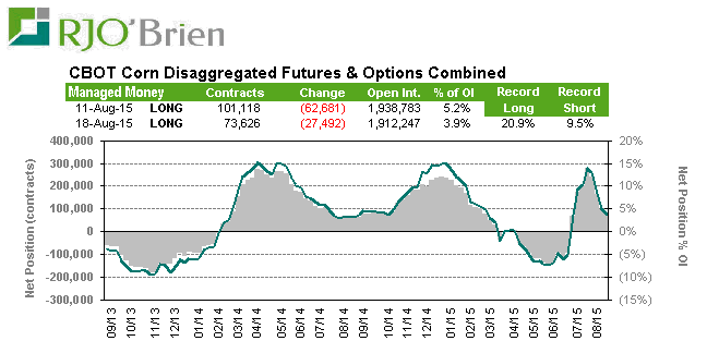 Corn : Les spéculateurs ont vendu 27,492 contrat et options afin de réduire le net long à 73,626.