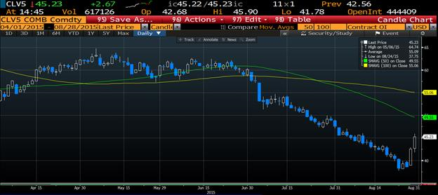 En effet, lundi matin le pétrole passait sous les 40$ pour la première fois depuis 2009 alors que les indices boursiers à travers le monde étaient pris d’une panique.