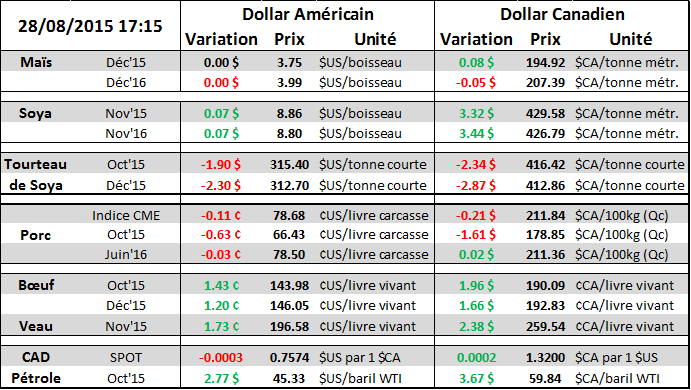 Aujourd’hui, le 28 aout, nous parlerons du $CAD, du pétrole, de la publication des chiffres du Conseil International des Céréales et des positions des spéculateurs dans les grains.