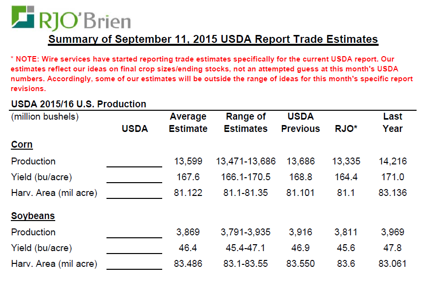 · Estimés pour le rapport USDA demain : on attend une légère baisse de rendement maïs et soja.
