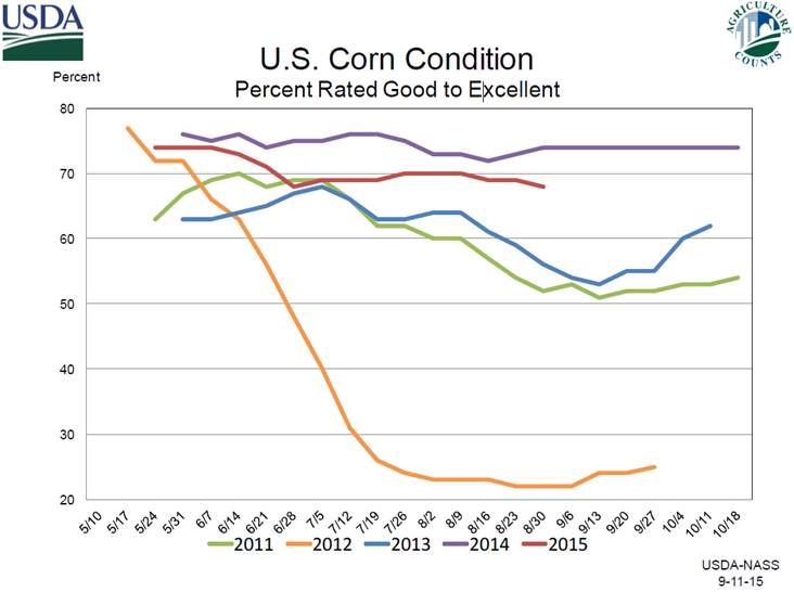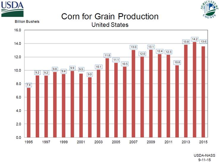 Graphe 3 – Production américain de blé d’Inde (est. Sep 2015 USDA)