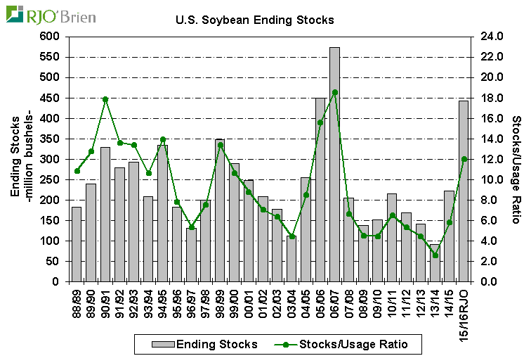 · Soja : carry 2015/16 en baisse de 20M à 450M.