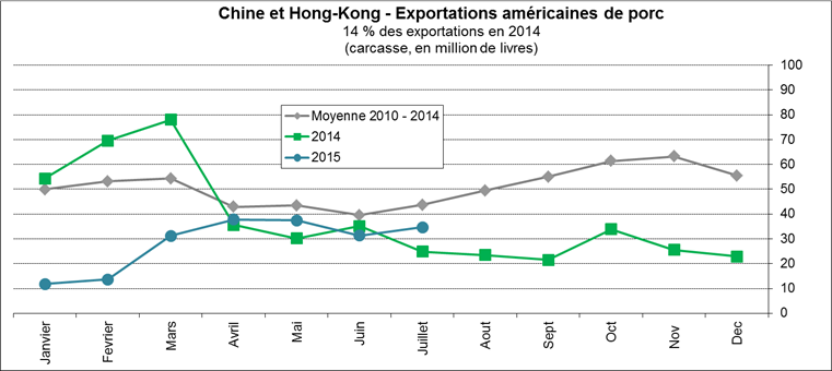 Graphique 6 – Exportation américaine de porc vers la Chine et HK