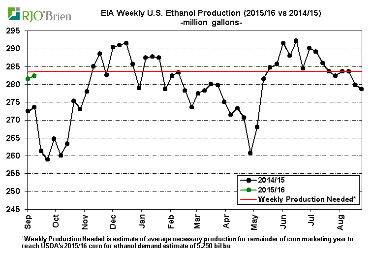 Ø La production hebdomadaire de 961,000 barils/jour se maintient en ligne avec les projection USDA sur l’utilisation de corn.