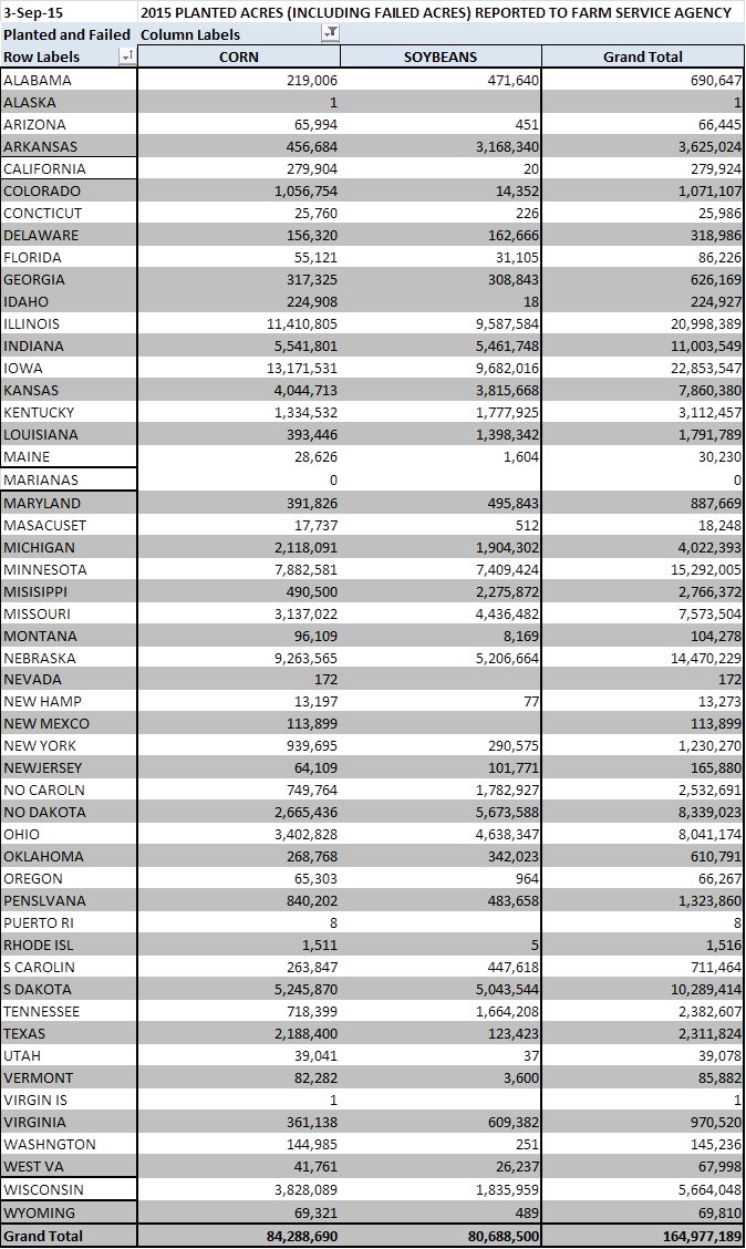 PS : A titre informatif pour les curieux, voici plus d’info maïs-soja avec le détail par état du Rapport FSA