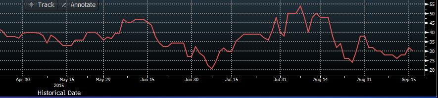 En dernier lieu, demain sera la décision de la FED à savoir s’ils haussent les taux ou non. Actuellement Bloomberg estime les chances à 30% que la FED hausse les taux et le consensus est qu’il n’y aura pas de changement.