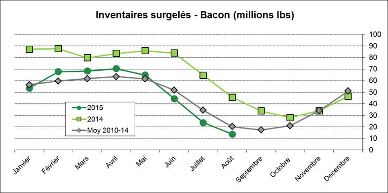 · 70% moins de bacon surgelé que l’an dernier, à 13.7 M livres