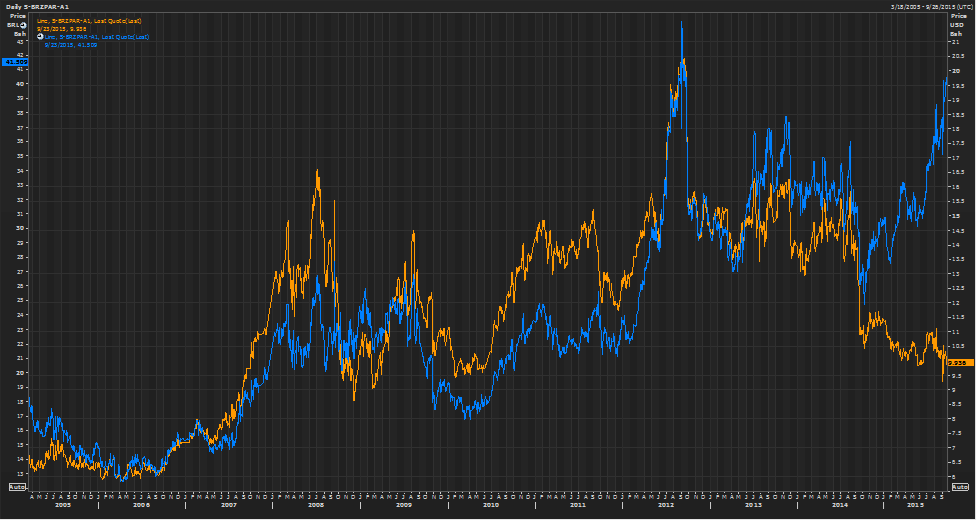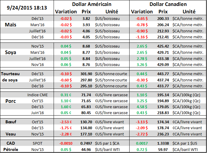 Et l’avenir va être encore plus difficile puisque la devise Brésilienne, le RÉAL, est en chute libre ce qui fait en sorte que le producteur brésilien reçoit encore beaucoup d’argent pour le soja et l’incite donc à augmenter les surfaces! Le producteur risque d’inonder le marché dans un contexte d’abondance et mettra de la pression sur le prix d’exportation qui lui est en USD…. Et c’est ça qui fait peur au marché pour l’hiver et le printemps prochain.