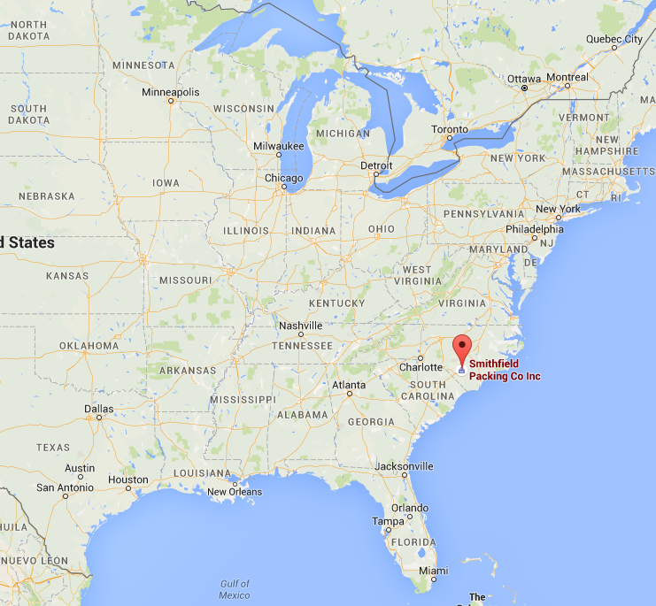 Abattoir de Tar Heel en Caroline du Nord. Appartient à Smithfield. Google Map.