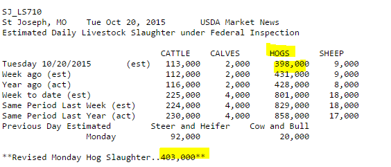 Journée très positive dans le porc sur les contrats rapprochés. L’abattoir Smithfield de Tar Heel en Caroline du Nord est en attente de réouverture suite à une fuite d’ammoniac dans l’usine depuis hier. L’abattoir a une capacité d’abattage de 32,000 porc par jour. Ca l’explique évidemment pourquoi l’abattage est en baisse depuis deux jours (398K aujourd’hui et 403K hier vs. 431K la semaine passée). Habituellement une fermeture d’abattoir a tendance à écraser les prix cash puisque cela augmente l’offre dans les usines avoisinante et les prix baissent. Alors pourquoi aujourd’hui le prix monte? J’identifie deux facteurs. Premièrement le prix de la découpe est élevé à 88.55 cents ce qui incite les autres packer a bidder pour aller capturer les marges. Avec le cash à 74.37 cents, les profits sont là et ils peuvent même payer un peu plus pour augmenter le volume et les revenus. Deuxièmement, la situation est temporaire puisque Smithfield prévoit reprendre la ligne dès jeudi. D’un point de vue fondamental c’est possiblement une opportunité à court terme de sécuriser des prix intéressant. D’un point de vue technique la tendance haussière est intacte et il ne serait pas impossible d’aller chercher les haut du mois de mai à 70 cents la livre. L’utilisation des options me parait intéressante dans le contexte actuel.