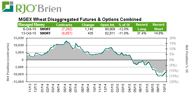 · Blé Minneapolis : Les spéculateurs sont net SHORT (vendeur) de 6,857 contrats et options