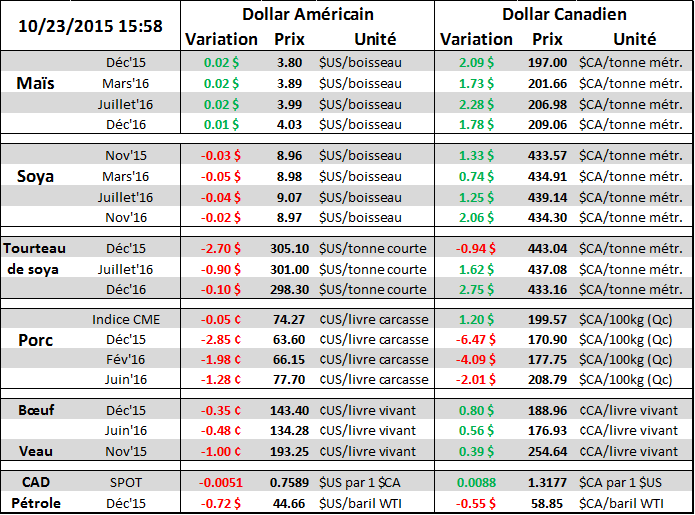 Durant la nuit, la Chine annonçait la levée des restrictions sur 14 abattoirs et entrepôts américains afin de reprendre les importations de viandes de ces établissements. Ces restrictions avaient été mises en place il y a plus d’un an, lors de l’épisode de la ractopamine (paylean) aux États-Unis qui est banni en Chine. Parmi les établissements sur la liste noire, il y avait des établissements de Tyson Foods Inc., Hormel Foods Corp. et Triumph Foods. Selon l’USDA, les plants américains qui participent au programme de l’USDA sur le contrôle de la ractopamine pourront reprendre les exportations prochainement. Selon Rabobank, c’était jusqu’à 50% des capacités de transformation de porcs américains qui n’était pas éligible à l’exportation vers la Chine. Pendant ce temps, les exportations européennes vers la Chine ont explosé, mais cela pourrait se rééquilibrer avec l’arrêt des restrictions. Cette nouvelle est très bonne pour la demande américaine puisque les ventes vers la Chine faisaient du statuquo alors que Smithfield Foods a vu ses ventes augmenter de 45% durant les 2 premiers trimestre de 2015, démontrant le potentiel des achats chinois lorsque la viande est conforme à leurs exigences. Rappelons-nous que le cheptel reproducteur chinois a diminué de plus de 20% en 2 ans.