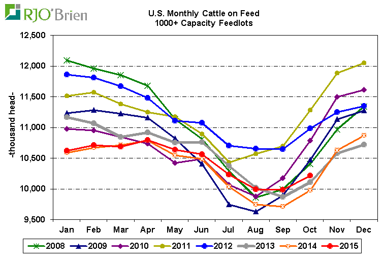 On feed : À 10.2 million de bête en parc d’engraissement c’est une hausse de 2.3% par rapport à 2014. Le troupeau grossi tranquillement mais demeure nettement sous les valeurs des années 2008 à 2012.
