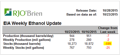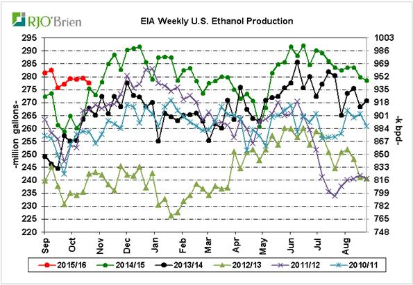 · Léger recul de la production d’éthanol, mais baisse de 3% des inventaires