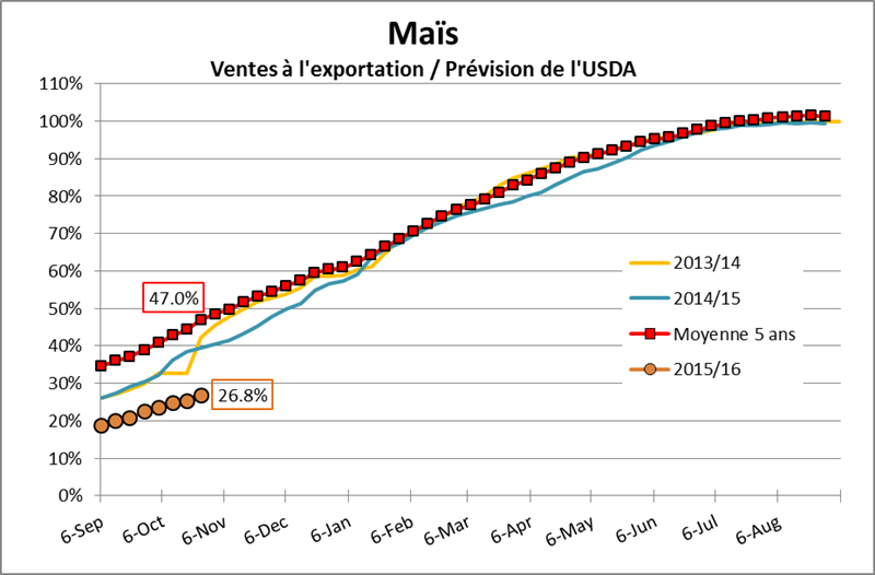 · Bonnes exportations de maïs, au-delà des attentes mais encore nettement sous les projection annuelles USDA