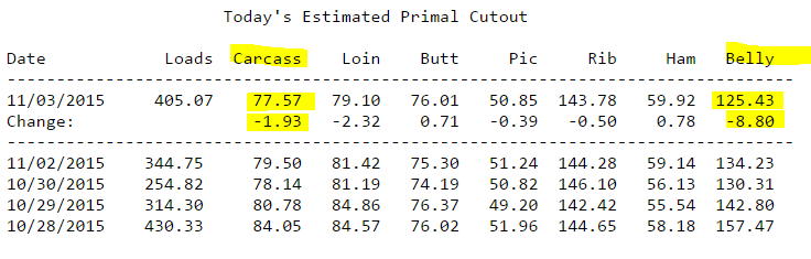 Valeur de la carcasse découpé en date du 3 novembre. Source USDA