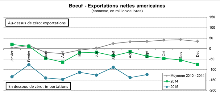 · Importations nettes de 123.4M lbs de bœuf en septembre
