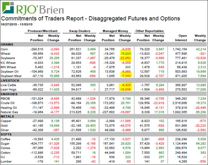 · La semaine dernière, les spéculateurs étaient vendeur de viandes, soya et maïs. Ils ont seulement acheté du blé