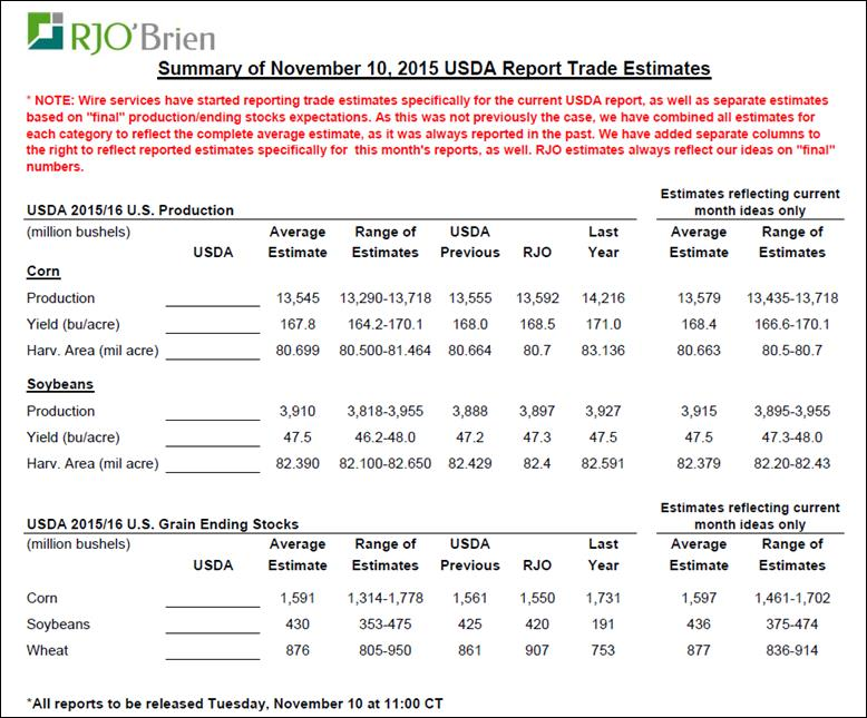 · Estimés pour le rapport Offre et Demande de l’USDA du 10 novembre (tableau 7)