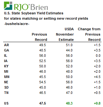 Ø hausse de 1.1 boisseaux à l’acre c’est très important comme révision et représente un record national de production et de rendement.