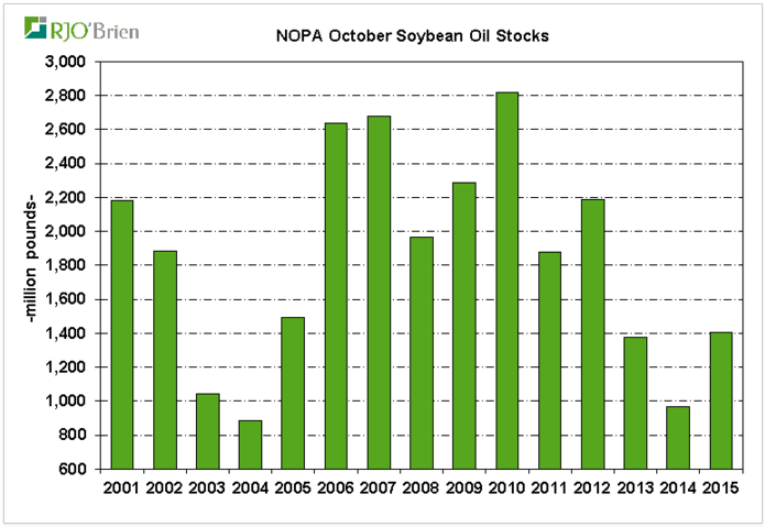 · Les inventaires d’huile de soya retourne à des niveaux convenables, en hausse de 46% versus octobre 2014