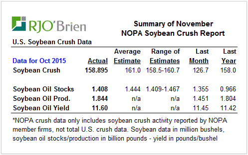 · Opération de trituration record en octobre: 158.9 M boisseaux de soya consommés