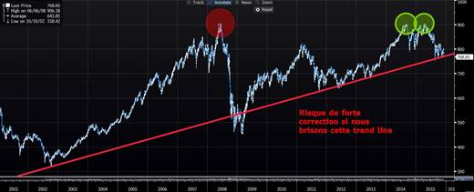 Techniquement, nous sommes revenus aujourd’hui sur le trend de long terme. Une rupture pourrait engendrer une forte liquidation de la part des investisseurs étrangers notamment.