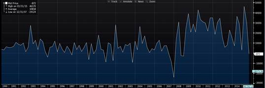 Le Canada qui avait été vu comme le Safe Haven au moment de la crise de 2009 a notamment vu un retrait d’actifs de 872 Millions CAD pour le 3e trimestre pour la première fois depuis fin 2008. C’est un total de 664 Milliards qui avaient rejoint le Canada entre fin 2008 et Septembre 2015.