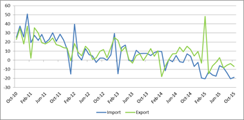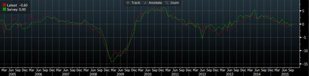 Ce soir nous surveillerons les importations et exportations chinoises. Le marché anticipe un excèdent commercial record de l’ordre de $64B. En rythme annuel les exportations devraient ressortir en baisse de 5% (vs -6.9% en Octobre) alors que les importations seraient de -11.3% (contre -16% en Octobre). Bien entendu une grande partie de ces variations est due à la chute des matières premières sur un an.