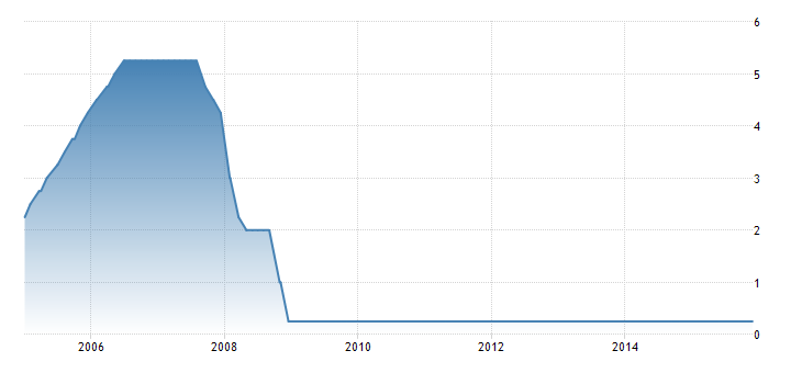 Taux d’intérêt américain depuis 10 ans – via Trading Economics.