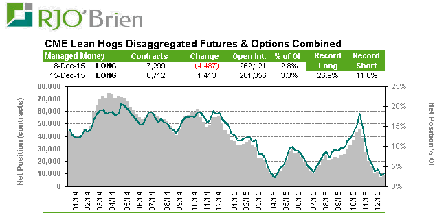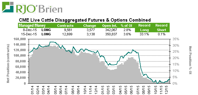 Concernant les inventaires de surgelés, les stocks de bœuf au 31 octobre 2015 atteignent 511.6 millions de livres c’est moins que les prévisions de 534.6 mais une hausse de 3% par rapport au mois dernier et une hausse de 34% par rapport à octobre 2014. Le rapport, bien qu’il représente les inventaires près de deux mois plus tard, devrait être positif pour les prix à court terme et soutenir la hausse actuelle.