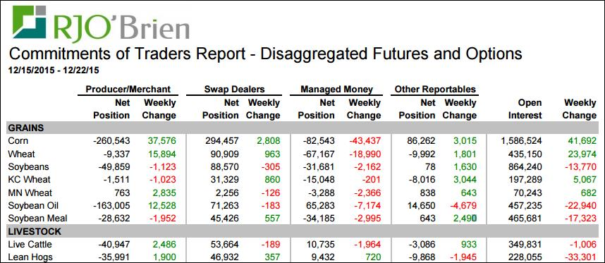 · Les spéculateurs vendent du grains pour finir 2015 en étant net vendeur