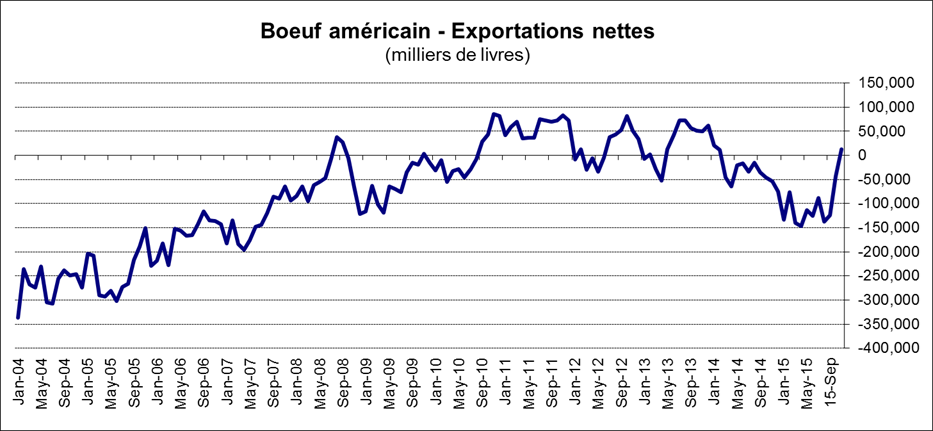 · En novembre, les américains étaient exportateurs nettes de bœuf, une première depuis février 2014