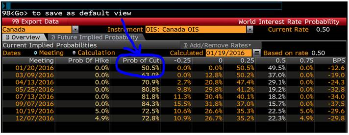 Nous allons savoir demain matin à 10AM si la Banque du Canada baissera son taux directeur. Les probabilités implicites d’une baisse de taux (calculées à partir des contrats à terme de la bourse de Montréal) est de 50% actuellement. Ça parait compliqué comme affirmation, mais en réalité ce qu’il faut retenir c’est que les marchés ne savent pas ce qu’il va arriver demain. C’est pile ou face ; une personne sur deux mise sur une baisse, l’autre sur une hausse…. L’important ici c’est de comprendre l’effet qu’une baisse de taux au Canada aura un effet négatif sur la valeur du huard face au USD. Actuellement le taux directeur est de 0.5% et le dollar canadien est à 68.74 $USD. Nécessairement le dollar est actuellement la clé du succès pour le producteurs canadien ; les contrats de mais nouvelle récolte valent 223$ la tonne via contrats CBOT et taux de change actuel.