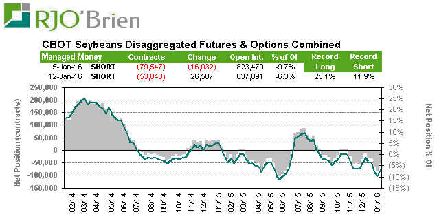 Soybeans : Les fonds sont net short 53,040 contrats ou options, c’est une position significative mais pas record. Là aussi ils sont en train de réduire leur mises.