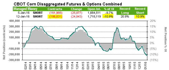 La tendance a changé depuis le rapport du 12 janvier. Depuis que l’USDA a revu à la baisse de rendement américain de 1 boisseau/acre, les probabilités de voir la récolte plus grosse qu’anticipé en décembre se sont effacées ce qui diminuait grandement le potentiel baissier. En date du 12 janvier, les spéculateurs détenaient une position vendeur de 187,000 contrats, soit 10.9% des contrats existants (Open Interest) ce qui était un record et mettait probablement une pression négative sur le prix. Suite au rapport USDA, les spéculateurs couvrent probablement leur position ce qui explique la petite tendance haussière.