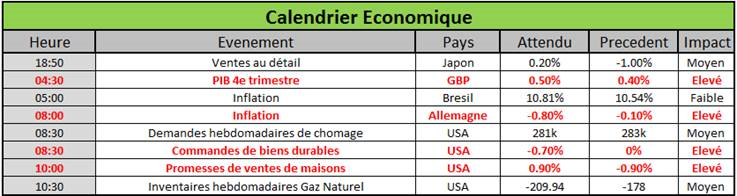 Aux Etats-Unis, les chiffres de commandes de biens durables et de ventes de maisons viendront finaliser les prévisions pour le PIB publié vendredi prochain.