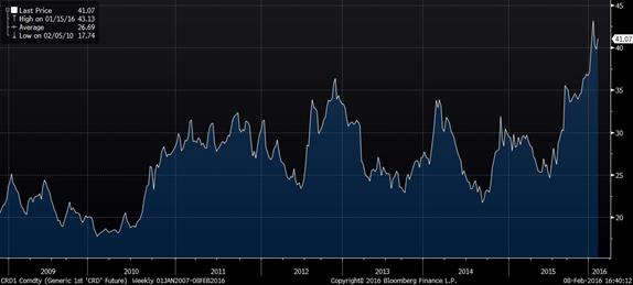 La semaine dernière, CONAB (service des statistique du minitère de l’Agriculture au Brésil) a mis à jour ses prévisions. La production de soya pour l’année 2015/16 a été revue à la baisse de 1.2% en raison de rendement plus faible, mais la récolte sera tout de même 5% de plus que l’an dernier, à un niveau record. Le rendement brésilien est chiffré à 3 tonnes/hectare, soit l’équivalent de 45.2 boisseaux/acre. L’agence brésilienne établit désormais la production de fève à 100.9 millions de tonnes métriques, en baisse des estimés de janvier à 102.1 MTM, mais largement au-dessus des 96.2 MTM produites l’an dernier. Inversement, la production de maïs a été réévaluée à la hausse de 1.2% en raison d’un rendement plus élevé pour la 1er récolte de l’année ainsi que plus d’acréage. La production brésilienne de blé d’Inde devrait donc atteindre 83.2 millions de tonnes métriques, ce qui est 1 MTM de plus qu’en janvier et 1.7 MTM au-dessus des prévisions de l’USDA. Il sera donc intéressant de voir l’ajustement apporté par l’agence américaine dans son rapport de demain. Les prévisions d’ensemencement pour la 2ème récolte brésilienne (safrinha) ont été réévaluées à la hausse de 0.7%, mais demeurent inférieures aux semis de l’an dernier par l’ordre de 2.2%. Notez que la semaine dernière, le prix du maïs a fait un sommet historique à la Bourse brésilienne (graphique 1) à plus de 40 BRL/60kg soit l’équivalent de 4.30 $US/boisseau. Évidemment cela représente une incitation à produire d’avantage pour les producteurs.