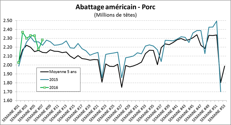 · Production hebdo de porc: +2.0% de plus qu’en 2015
