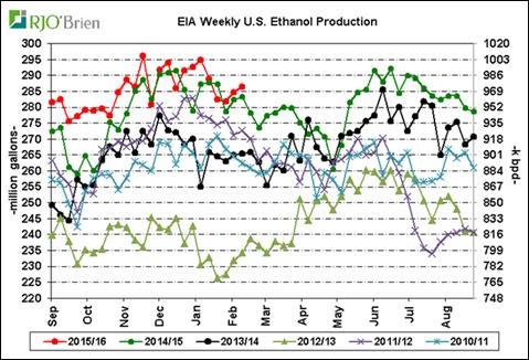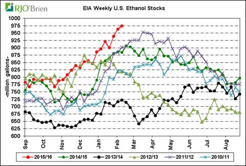· Production hebdo d’éthanol à 975 000 barils par jour
