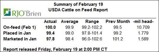 Le rapport mensuel Cattle-on-Feed semble à priori neutre pour les prix. En ligne avec les estimés (tableau 1), il y avait autant de bœufs en parc au 1er février 2016 qu’en 2015, soit 10.7 millions têtes. Toutefois, il y a eu légèrement plus de placements qu’anticipés, mais on reste à des quantités plus faibles que celles de janvier 2015 par -0.6%. Au total, 1.78 million de bêtes ont été placées en parc alors que seulement 1.6 million ont quitté pour l’abattoir ce qui cause une augmentation de 134 000 bœufs comparativement au 1er janvier. Le prix du bœuf est toujours dans sa tendance baissière depuis plusieurs mois et le rapport d’aujourd’hui ne semble pas assez positif pour que la situation change à court terme.