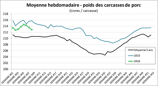 · Les abattages de porc demeurent élevés à près de 2.3M têtes, heureusement que le poids diminue
