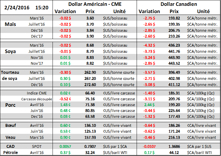 Demain et vendredi se tiendra le forum annuel de l’USDA 2016 Agricultural Outlook Forum et nous y accordons une attention particulière notamment pour les prévisions quant aux surfaces ensemencées dans les champs américains pour la saison qui s’en vient rapidement. Nos espions devraient être en mesure de nous rapporter l’information dès la première conférence entre 8.10AM et 8.45AM. Voici ce qui est généralement attendu :