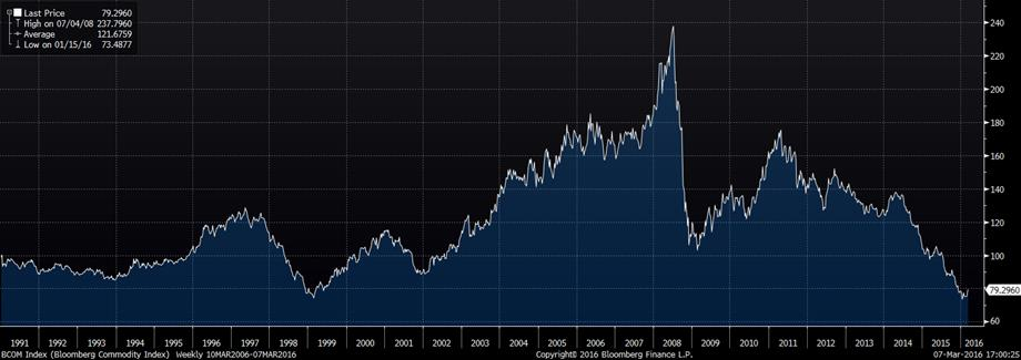 Graphique 2 - Indice Bloomberg des matières premières depuis 1991