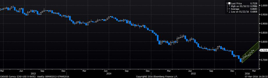 Graphique 4 - Taux CAD/USD en hebdomadaire