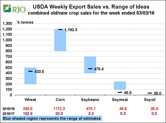 · Ventes à l’exportation: élevé pour le maïs, en ligne avec les estimés pour le soya et le blé