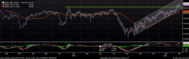 · Le contrat à terme du porc de juin ferme à son plus haut niveau, à 83.73 ¢us/lb
