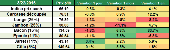 · Inventaires surgelés de porc : en ligne avec la moyenne quinquennale à 628M livres