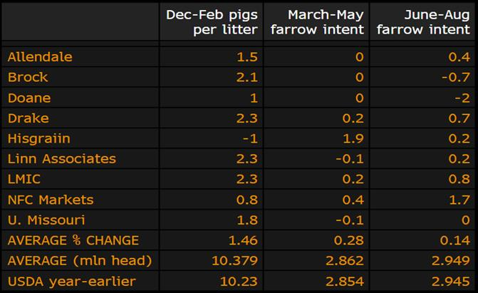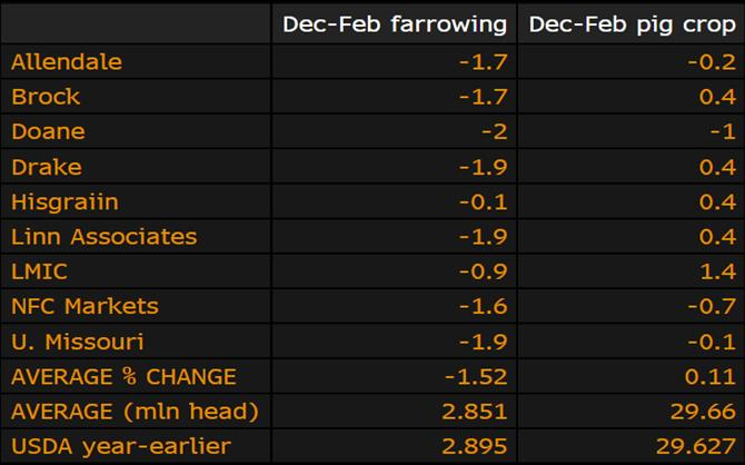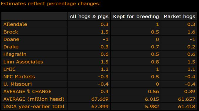 Ce vendredi, à 15h00, l’USDA publiera les chiffres sur le cheptel porcin américain en date du 1er mars. Notez que la Bourse sera fermée vendredi en raison du congé Pascal et n’ouvrira que lundi matin. Voici une brève description des estimés selon les catégories. Vous trouverez le détail des sondages ci-dessous.